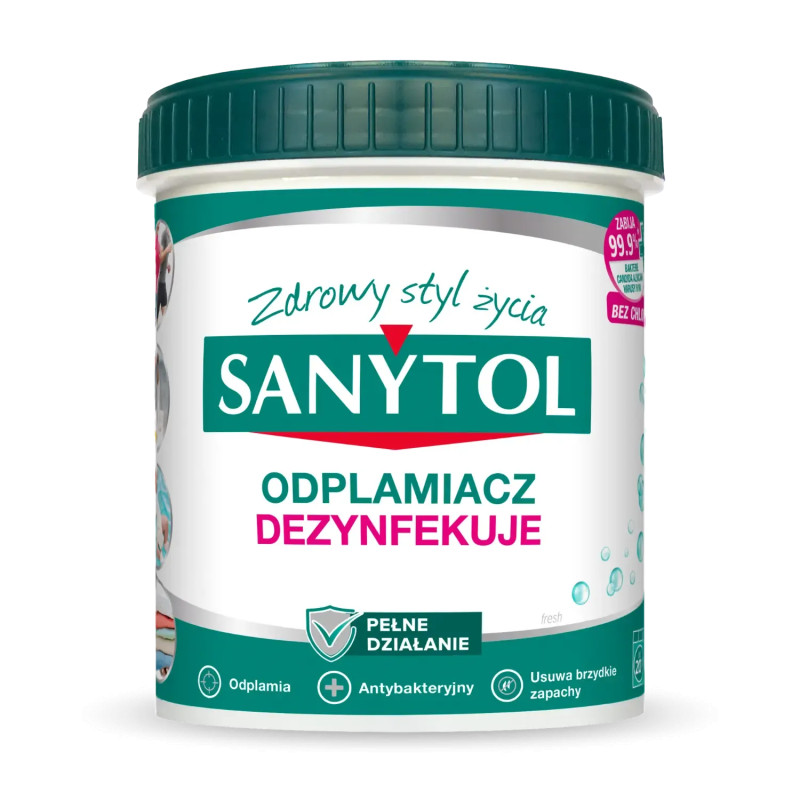 SANYTOL opracował dodatek do płukania prania, który eliminuje nieprzyjemne zapachy i odświeża w niskich temperaturach i krótkich cyklach. Jego świeży zapach nadaje ubraniom przyjemne uczucie czystości. Ponadto, jego formuła nie zawiera chloru i chroni włókna białych i kolorowych ubrań.